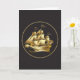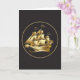 Um belo veleiro dourado de mastros altos sobre um fundo preto contrastante. Adequado para todas as ocasiões, você pode adicionar texto ou outra mensagem na parte externa e interna deste cartão selecionando o botão "personalizar" e inserindo seu texto.