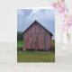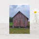 Um cartão de vazio para um amigo ou membro da família com uma fotografia de um antigo celeiro vermelho com madeira em apuros.