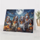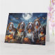 Libere o espírito assustador com esta design sombria do Dia das Bruxas apresentando um bando de cachorros sob um céu escuro e iluminado, cercado por morcegos voadores e abóboras brilhantes. Perfeito para aqueles que amam um toque de diversão terrível com seus amigos peludos!