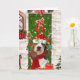 Um cão Basset Hound sentado fora de casa decorada com coroa de Natal, árvore de Natal é uma ótima ideia de presente de Natal para amadores de cães.