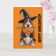 Cartão Basset hound usando chapéu de bruxa e abóbora