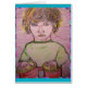 um menino tocando bongos de brinquedo de um desenho colorido de lápis. também com o slogan "bongo beats"!