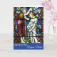 Esta é uma bela imagem de vitral de Jesus sendo batizado por São João Batista no Jordão.