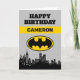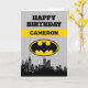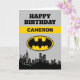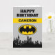 Celebre no estilo de super-herói com este cartão de aniversário dinâmico Batman Gotham City! Apresentando a icônica linha do horizonte de Gotham e o Bat-Signal brilhando contra o céu noturno, esta placa é perfeita para os fãs do Cruzador Caped. Seu design ousado e personalizável texto faz dele uma maneira divertida e memorável de enviar desejos de aniversário para um dia cheio de ação.