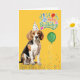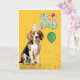 Cartão Beagle Dog em Festa Hat no Aniversário Amarelo