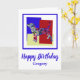 Silhueta de cachorro beagle hound abstrato em retângulos vermelhos, azuis e amarelos claros. Diversão da mensagem de aniversário na frente da carta junto com a dentro... "Espero que seu aniversário seja como você. PAWESOME pode ser alterado para qualquer coisa que você quiser.