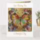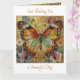 A pretty card wishing a friend or family member a good day with a front illustration of a beautiful gold, teal and orange butterfly surrounded by yellow, white and purple flowers. It's done with an impasto style and just emanates beauty and grace.