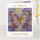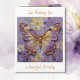 A pretty card wishing a friend or family member a beautiful birthday with a front illustration of a beautiful gold and purple butterfly surrounded by white and purple flowers. It's done with an impasto style and just emanates beauty and grace. Inside is a pretty birthday and butterfly poem.