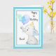 Cartão Bebê Blue Elephant Bonito Criança de Aniversário