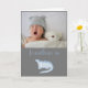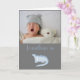 este cartão de 3 meses de meia-idade de bebê apresenta uma foto personalizada de bebê com uma ilustração de bebê engraçada e azul de dinossauro