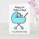 Desenho animado engraçado de um menino bebê acenando de um carrinho azul. Cartão diz Feliz 1º Dia dos Pais ao meu Papai Maravilhoso. Personalize facilmente este cartão editando o texto do modelo na frente e dentro. Obrigado por ver meus designs!