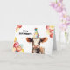 Bem-vindos a uma celebração temerária com nosso adorável Cartão de Aniversário de Vaca Bebê! Este cartão encantador apresenta um bezerro irresistível e fofo fazendo um chapéu de festa, cercado por balões brancos. É a escolha perfeita para adicionar um toque de diversão e riso aos seus cartões de aniversários. As cores lúdicas e os detalhes intrincados criam uma atmosfera de alegria e celebração, fazer-a uma escolha ideal tanto para crianças como para adultos.