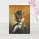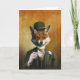 Esta trabalho de arte mostra uma raposa cavalheiro bebendo de chá em um chapéu e terno.