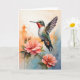 Beija-flor rodeado por flores coloridas. Cartão de cumprimentos em branco para aniversário, aniversário de casamento, novo bebê, agradecimento, condolências, etc.