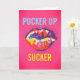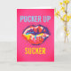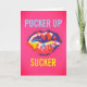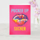 Esqueça os sonetos piegas e as rosas de supermercado. Se o seu relacionamento é construído em brincadeiras e vibrações "lovely jubbly", este é o cartão para você. Com um gráfico vibrante de lábios inspirado em pop-art em tons de rosa e laranja de alta voltagem, a frente define o clima com um "Pucker Up Sucker" atrevido.