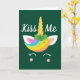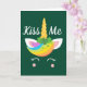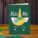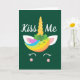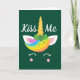 Linda Rua. Um unicórnio mágico do arco-íris do Dia de Patrick com bonito pestanas brancas e adoráveis orelhas rosa. Beije-me. Um cartão irlandês fofo.
