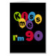 90? Vocês vão amar o nosso Beijo-me. Sou 90 aniversariantes em camisas, canecas, cartões, adesivos, ímanes, chaveiros e outros equipamentos de 90 com um balão e design de texto brilhantes multicoloridos.
