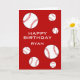 Beisebol Bolas Feliz Aniversário Crianças Personalizadas. Cartão de aniversário de beisebol para crianças. Este cartão personalizado de beisebol tem um desejo de aniversário Feliz, um nome e muitas bolas de beisebol no lado da frente, bolas dentro à esquerda e uma bola no lado de trás. O esquema de cores é vermelho e branco. Personalize o cartão com o nome da criança. Cartão de excelente de aniversário para amantes de beisebol e esporte.