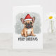 Brilhar o feriado de alguém com um delicioso cartão de saudação de Natal com um desenho animado a aquarelas Cachorro francês transformado em uma árvore de Natal festiva 🎅 O adorável filhote de Papai Noel vermelho e alegre com um trim branco, e é colocado contra um fundo de cinza leve com pontos brancos nevados 🎄 Com um grande sorriso, o Cachorro Francês traz alegria para a estação! Abaixo do amigo peludo, "MERRY CHRISTMAS" é elegantemente escrito em uma fonte preta, escrita à mão, 🎁 Perfeito por espalhar alegria e desejos calorosos de feriado a pessoas amadas perto e longe!