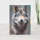 Cartão Bela Cinza Selvagem Estilo de Óleo de Lobo Retrato