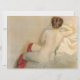 Este design apresenta uma pintura do artista italiano Giuseppe de Nittis (1846-1884). Mostra o corpo elegante de uma mulher bonita com as costas em direção ao espectador. Ela tem pele macia e cremosa e cabelos castanhos na moda. A senhora está vestindo meias vermelhas brilhantes que ficam logo acima de seus joelhos. O resto do corpo dela está nu. É uma representação requintada da beleza feminina. A arte original foi pintada em 1879.