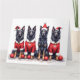 Elegant and intelligent Belgian Shepherds (Groenendaels) look poised and ready for the holidays in their festive Christmas Santa outfits. A beautiful design for owners of this classic herding breed.