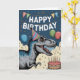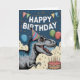 Faça uma diversão de aniversário com este cartão de aniversário teórico de dinossauros! Apresentando um T-Rex caprichoso vestindo um chapéu de festa, cercado por balões coloridos, bunting, e um delicioso bolo de aniversário, este design é perfeito para amantes de dino de todas as idades. Brilhante, alegre e cheio de espírito pré-histórico, é uma maneira ideal de tornar o dia especial de alguém memorável. Personalize o dentro com sua própria mensagem para adicionar um toque pessoal!