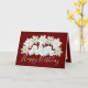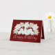 Belo buquê constituído por flores brancas clematis circundantes de montes de rosas brancas contra fundo vermelho. O texto de saudação de aniversário usa uma fonte de tipografia de script atraente. As flores cobrir a frente deste cartão que pode ser usado como cartões de agradecimentos, cartão de aniversário ou qualquer outro cartão de sua escolha. Personalize-o com o seu texto e/ou imagens para torná-lo de um tipo!