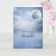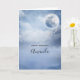 Cartão de aniversário com um céu azul sombrio cênico com nuvens e uma grande lua bonita. 2 cisnes brancos voando juntos.