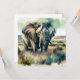 Um cartão de vazio com um elefante da savana africana em africano ou na Ásia caminhando nos prados. Bonito ilustração do ai feita no estilo de aquarela.