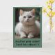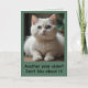 Traga sorrisos e risos para qualquer aniversário com este cartão adorável e humorístico de tema de gatos. Com um gatinho branco na moda vestindo uma coleira de pérolas, a frente lê "Outro ano mais velho? Não brinque com isso!" enquanto o dentro diz "Celebre grandes, cochilem com frequência, e fique fabuloso com as patas. Feliz aniversário!" Perfeito para amantes de gatos e qualquer um que aprecie um bom trocadilho com seus desejos de aniversário. Tamanho: Design de cartão de aniversário totalmente personalizável: giro, engraçado e tímido! Ocasião: Aniversários para amigos, família ou qualquer fã felina