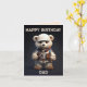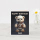 Deseje ao seu Pai maravilhoso um aniversário muito feliz com este cartão encantador, mostrando um urso de pelúcia engenheiro industrializado pronto para qualquer tarefa! Esta ilustração encantadora ilustrada apresenta um ursinho de pelúcia bonitinho, bege, em um uniforme mecânico inteligente, perfeito para o Pai que é um verdadeiro homem e sempre sabe como consertar as coisas. É uma maneira maravilhosa de celebrar seu dia especial e mostrar apreço por suas habilidades e como ele amavelmente empresta uma pata de ajuda. Faça seu aniversário especial com este cartão único que lhe diz que ele é o melhor!