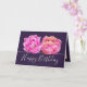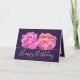 Duas impressionantes flores de tulipa cor-de-rosa formam um belo buquê floral contra um fundo de cor roxa-ameixa. O texto de saudação de aniversário usa uma fonte de tipografia de script atraente. As flores cobrir a frente deste cartão que pode ser usado como cartões de agradecimentos, cartão de aniversário ou qualquer outro cartão de sua escolha. Personalize-o com o seu texto e/ou imagens para torná-lo de um tipo!