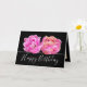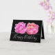 Duas impressionantes flores de tulipa cor-de-rosa formam um belo buquê floral contra um fundo preto. O texto de saudação de aniversário usa uma fonte de tipografia de script atraente. As flores cobrir a frente deste cartão que pode ser usado como cartões de agradecimentos, cartão de aniversário ou qualquer outro cartão de sua escolha. Personalize-o com o seu texto e/ou imagens para torná-lo de um tipo!