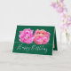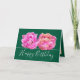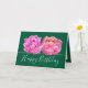 Duas impressionantes flores de tulipa cor-de-rosa formam um belo buquê floral contra um fundo verde-escuro. O texto de saudação de aniversário usa uma fonte de tipografia de script atraente. As flores cobrir a frente deste cartão que pode ser usado como cartões de agradecimentos, cartão de aniversário ou qualquer outro cartão de sua escolha. Personalize-o com o seu texto e/ou imagens para torná-lo de um tipo!
