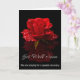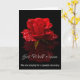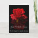 Uma bela rosa vermelha com gotas de chuva e um sincero desejo de sucesso.