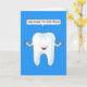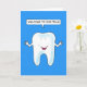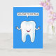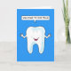 Um grande e sorridente dente de desenho animado dizendo "Bem-vindo à nossa Equipe". A imagem é definida sobre um fundo azul brilhante colorido.