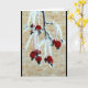 Belas frutas vermelhas cobertas de geada, agarradas a um galho de árvore, é o assunto da minha placa de "Pensando em Você" na cena do inverno.