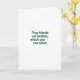 This greeting card keeps things simple and puts the message front and center. In the middle of the card, it reads, “True friends are families, which you can select.” The text is in teal and uses a slightly rounded serif style that feels warm and easy to read. It sits on a plain white background with no characters or extra objects, so your eyes go straight to the quote. The spacing around the words gives it a calm, open feel, like a quiet reminder of how much chosen friendship matters. Overall, it’s a thoughtful card for a close friend or someone who feels like family ❤️💌.