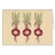 Uma ilustração vegetal do vintage de uma beterraba é colorida nos vermelhos e nos verdes.