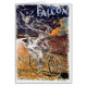 Um poster vintage de Jean de Paleologue para Franco American Bicycle Co. por volta de 1893. Uma mulher vestida de fofoca andando de bicicleta. Um falcão branco senta-se na mão dela.