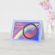 Cartão com minha arte original de uma roda de bicicleta e arco-íris. O texto diz "Parabéns". Dentro Verso.