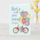 Adicione o nome do destinatário a este cartão de aniversário ilustrado com uma bicicleta vermelha adornada com balões coloridos. Esta carta captura a essência da diversão e da aventura. Com a mensagem brincalhona "Tenha um Excelente de Roda Aniversário" do outro lado da frente, é certo que traz um sorriso para a face do receptor, seja ele um entusiasta do ciclismo ou simplesmente ame um bom momento