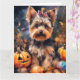 Cartão Biewer Terrier de Halloween com Abóboras Assustado