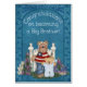 Fundo azul profundo do nouveau da arte com um menino do urso e um pouco urso que rastejam em seus pés, na frente de uma porta de jardim com flores bonito. Um design lunático perfeito para felicitar um big brother novo no nascimento de sua irmã mais nova. Personalize-o mudando o verso e/ou adicione-o sua mensagem pessoal.