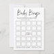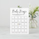 Cartão de jogo de bingo de chá de fraldas bonito com "Baby Bingo" no topo de um roteiro de caligrafia moderno e um arco-íris de ouro e aquarela azul como o ponto central do bingo. Personalize com a mãe para ser o nome e a data do chá de fraldas no fundo. A design coordena-se com a nossa coleção de bebês e crianças do Cotovelo-Arco-íris.