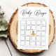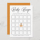 Um cartão de jogo de bingo de chá de fraldas bonito com "Baby Bingo" no topo de um roteiro preto moderno com uma ilustração aquarela de um veado bebê cercado por folhas de outono em tons de laranja, vermelho e amarelo. como ponto de bingo central. Personalize com a mãe para ser o nome e a data do chá de fraldas no fundo. A design coordena-se com a nossa coleção de chás de fraldas de Animais da Floresta Única.