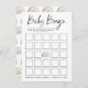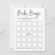 Um cartão de jogo de bingo de chá de fraldas bonito com "Baby Bingo" no topo de um roteiro de caligrafia moderno e um arco-íris de aquarela azul e marrom como ponto central do bingo. Personalize com a mãe para ser o nome e a data do chá de fraldas no fundo. A design coordena-se com a nossa coleção de bebês e crianças do Cotovelo-Arco-íris.
