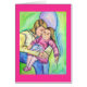 Esta pintura é da minha irmã segurando minha sobrinha na festa de aniversário dela. Minha sobrinha tem suas coisas favoritas de seu pacificador, cobertor roxo e um balão. Ela está em sua cor de rosa favorita. Com todas essas coisas favoritas, nunca é completo sem um beijo e abraço de sua amada mamãe, minha irmã. Eu adoro esta imagem porque ela tem doce ternura de uma mãe e filha particulares em um momento no meio do caos da festa de aniversário infantil. Gosto da paz que ambos têm durante o breve momento para um abraço e um beijo.