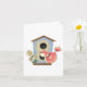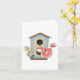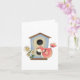 Um pássaro fofo empoleirado fora de uma casa de pássaros. Este design parece realmente eficaz com este Cartão de Saudação